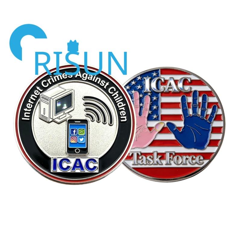 Wholesale Custom Metal Antique Gold Silver Souvenirs Coin Violent Crimes Against Children ICAC Task Force Challenge Coins