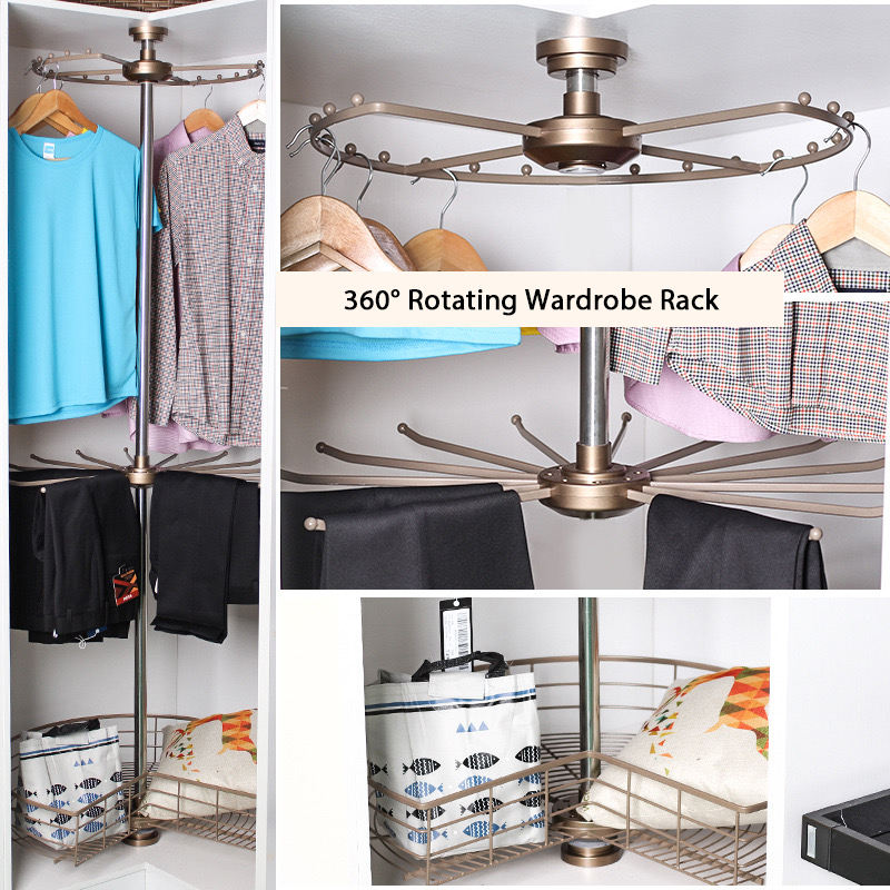 Cesto Portabiancheria Rotante Multifunzionale a 3 Livelli per Armadio Angolare