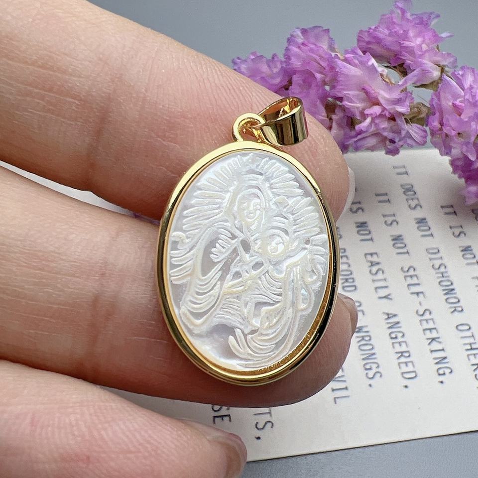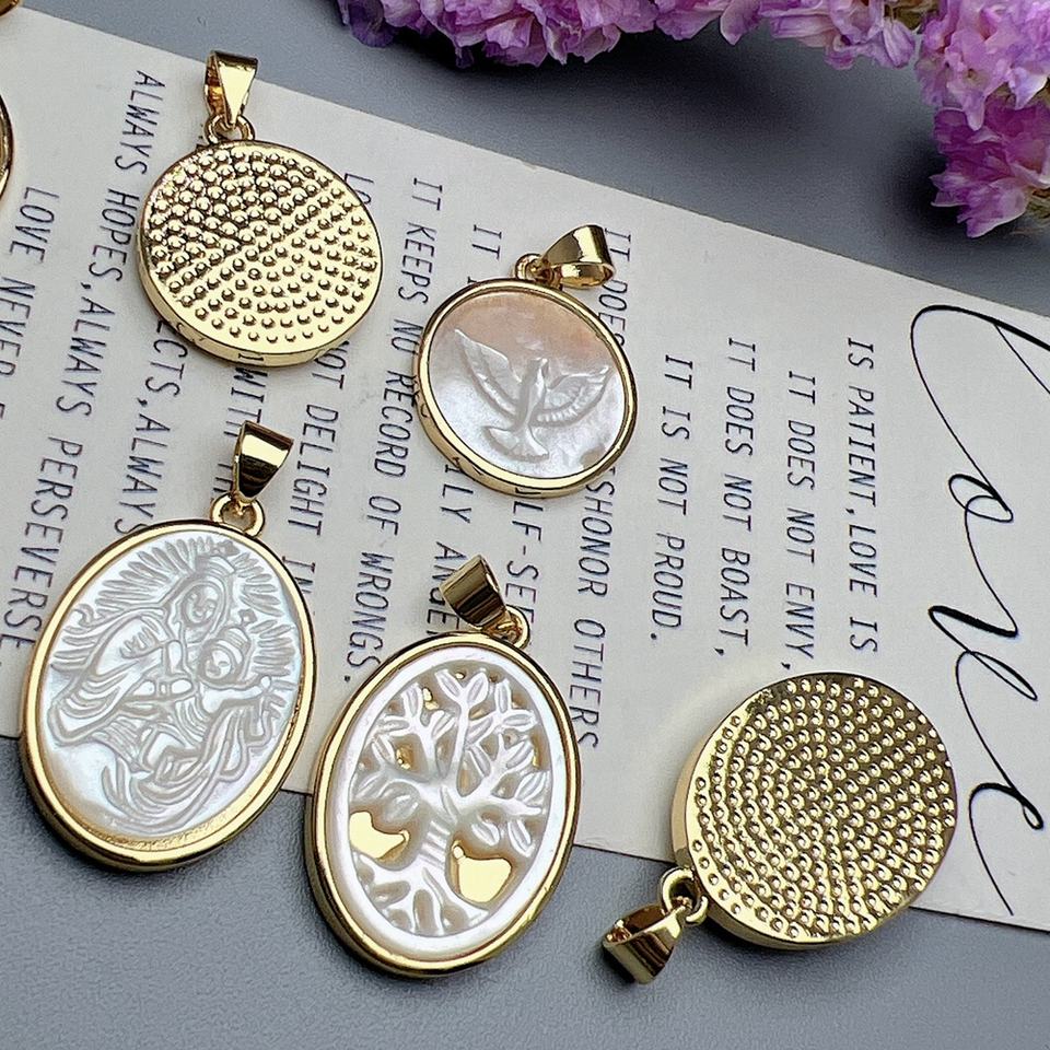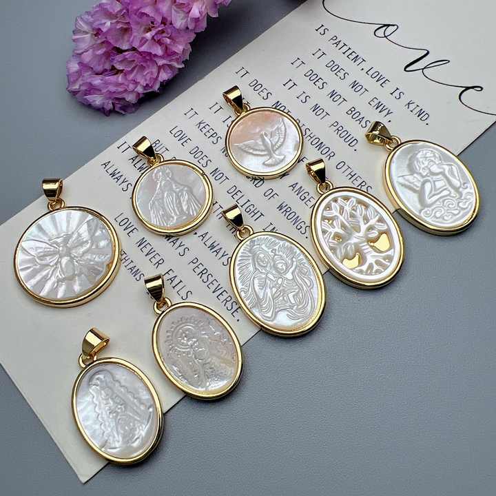 Wholesale Custom Natural Mother of Pearl Shell Peace Dove Virgin Mary Guadalupe Angel Pendants Charms Jewelry Making