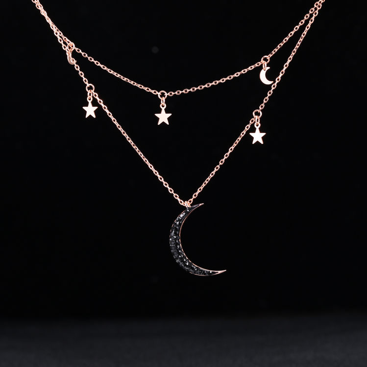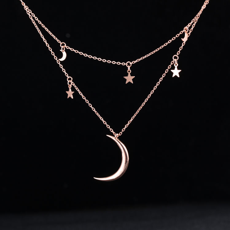 Ingrosso su ordinazione della stella del nord catena di strato 925 collane d'argento signore oro bianco oro luna stella collana donna
