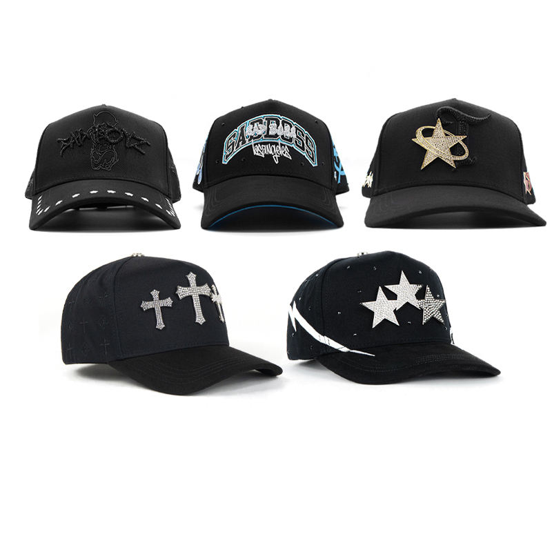 Cappelli da baseball personalizzati OEM all'ingrosso con visiera curva a 5 pannelli, ricamo 3D, modello Baez, modello Scream, modello Gorra De Tito Doble P