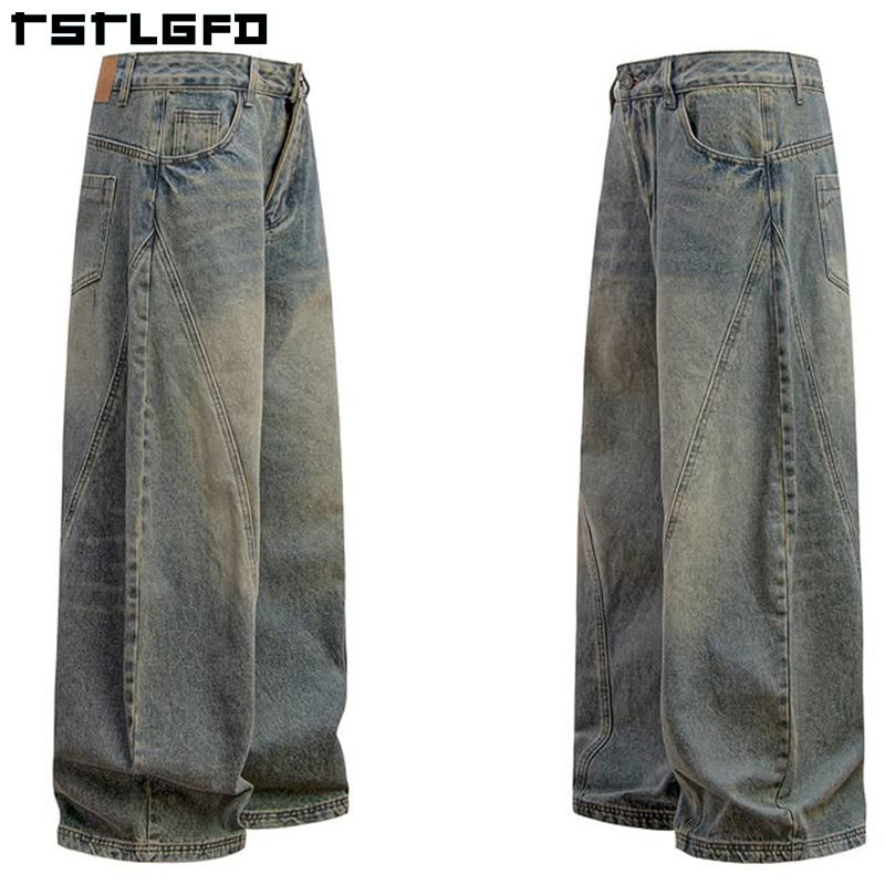 Jeans Larghi Vintage in Denim di Cotone di Alta Qualità, Personalizzabili, Stile Streetwear per Uomo