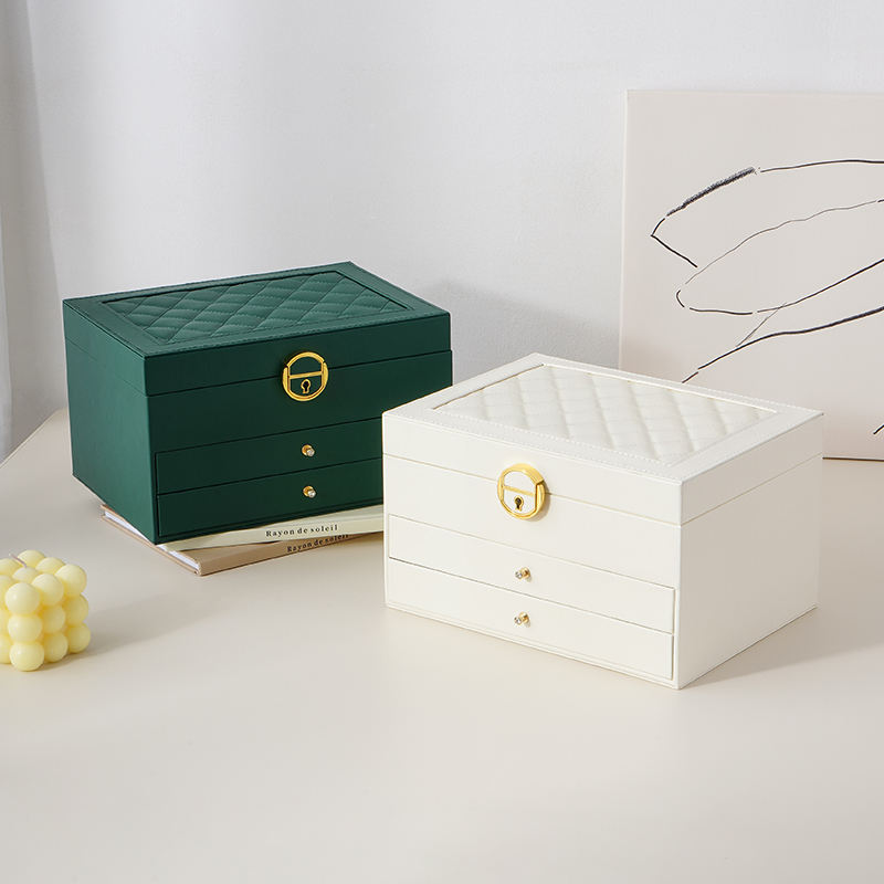 Commercio all'ingrosso personalizzato in pelle PU 3 strati grande portagioie con cassetto collana grande anello orecchino orologio gioielli organizzatore regalo caso