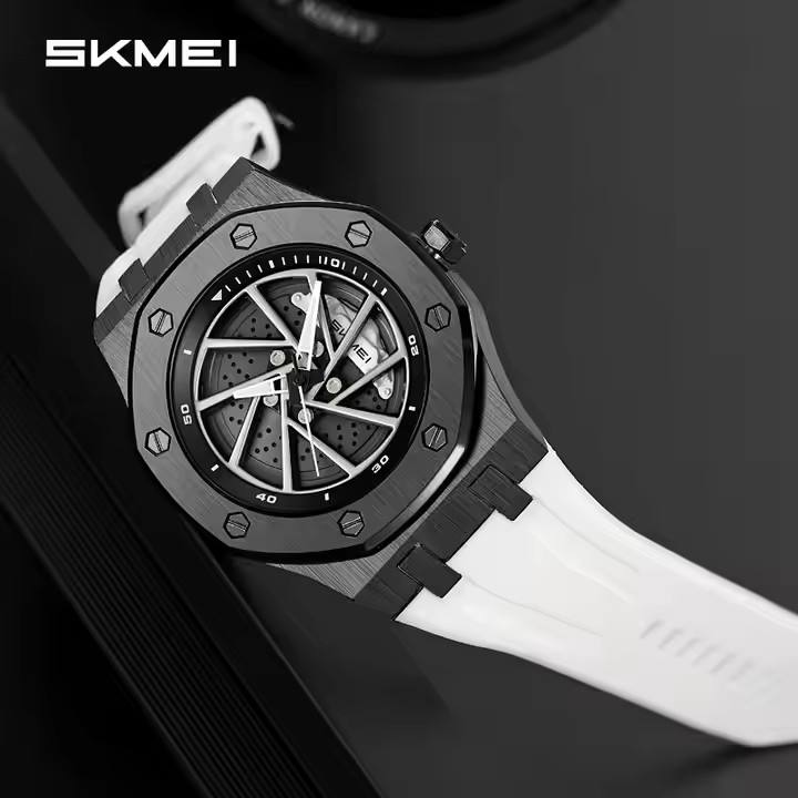 Wholesale Custom Quartz Watch Skmei 2359 Fashion Silicone Car Wheel Hub Dial Rotating Waterproof Men's Watch Rotating Relojes