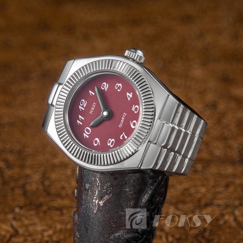 Commercio all'ingrosso Retro Hiphop anello da dito orologio elastico cinturino al quarzo argento Mini anello orologio uomo donna
