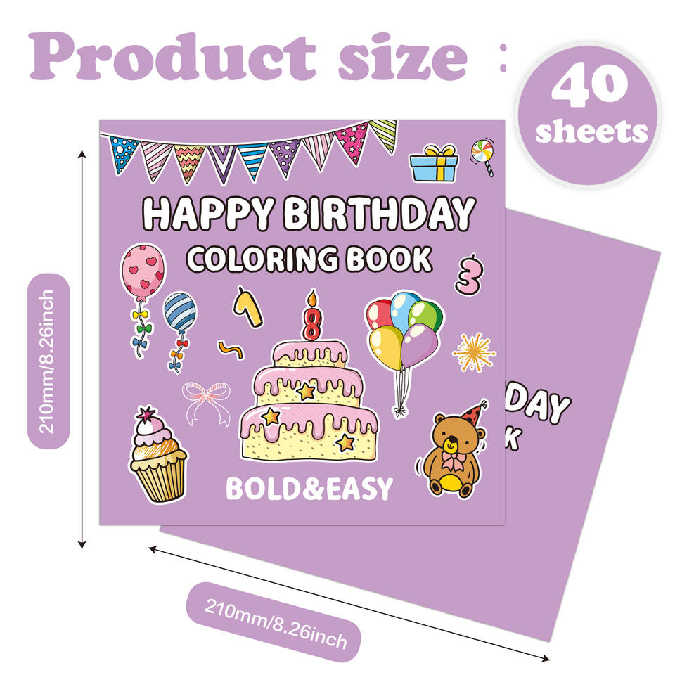 Ingrosso su ordinazione semplice grandi disegni audaci facile buon compleanno libro da colorare adulti bambini 5-7 anni disegno di carta Set di giocattoli