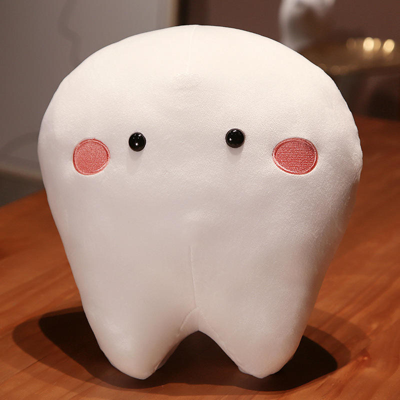 Giocattoli di Peluche a Forma di Dente Personalizzati all'Ingrosso, Cuscini Morbidi a Forma di Denti Bianchi con il Tuo Logo