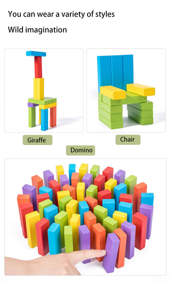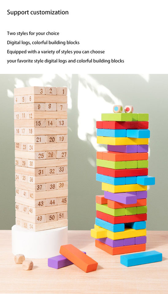 Set di Blocchi da Costruzione in Legno Personalizzabili con Stampa, 54 Pezzi, Gioco da Tavolo Impilabile per Bambini