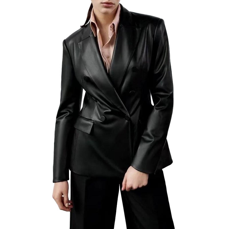 Wholesale Custom Spanish Women's Faux Leather Double-breasted Suit