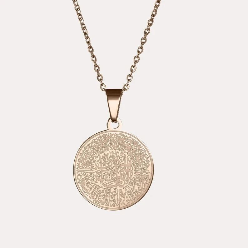 Wholesale Custom Stainless Steel Ayatul Kursi Surah Fatiha Islamic Jewelry Arabic Pendant for Women and Men Gift Chain Necklace