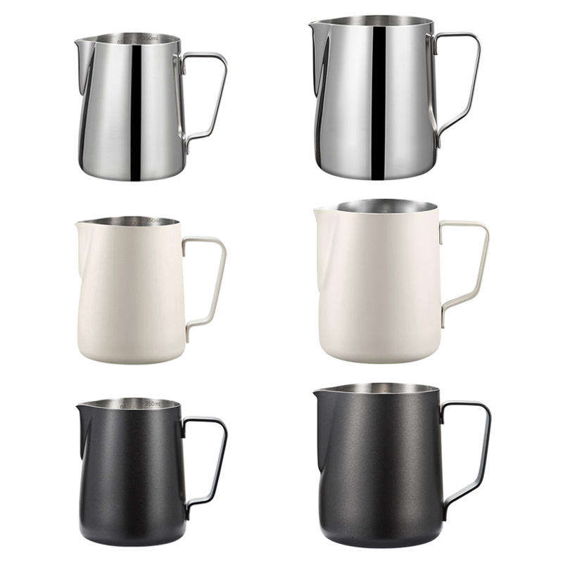 Commercio all'ingrosso caraffa per caffè in acciaio inox piccola brocca moderna in metallo per la schiuma di caffè Espresso a vapore per Barista Latte Art