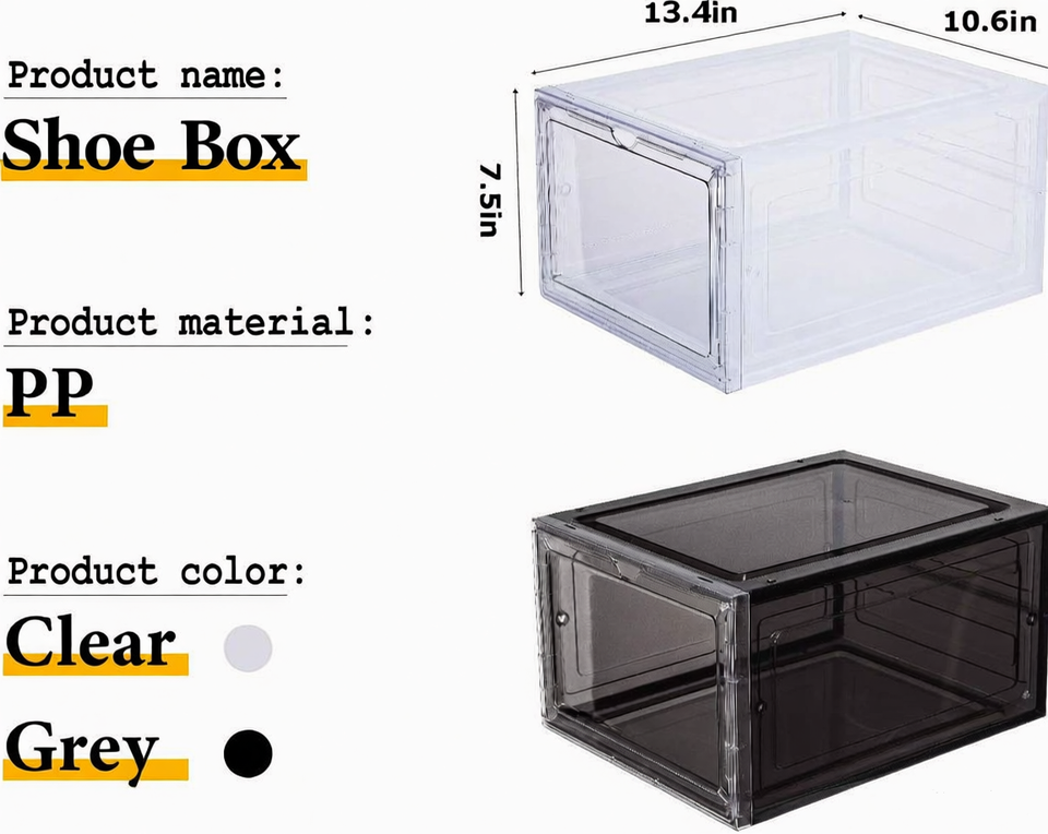 Scatola Portascarpe in Plastica Trasparente Personalizzabile, Robusta e Durevole, Impilabile e Pieghevole