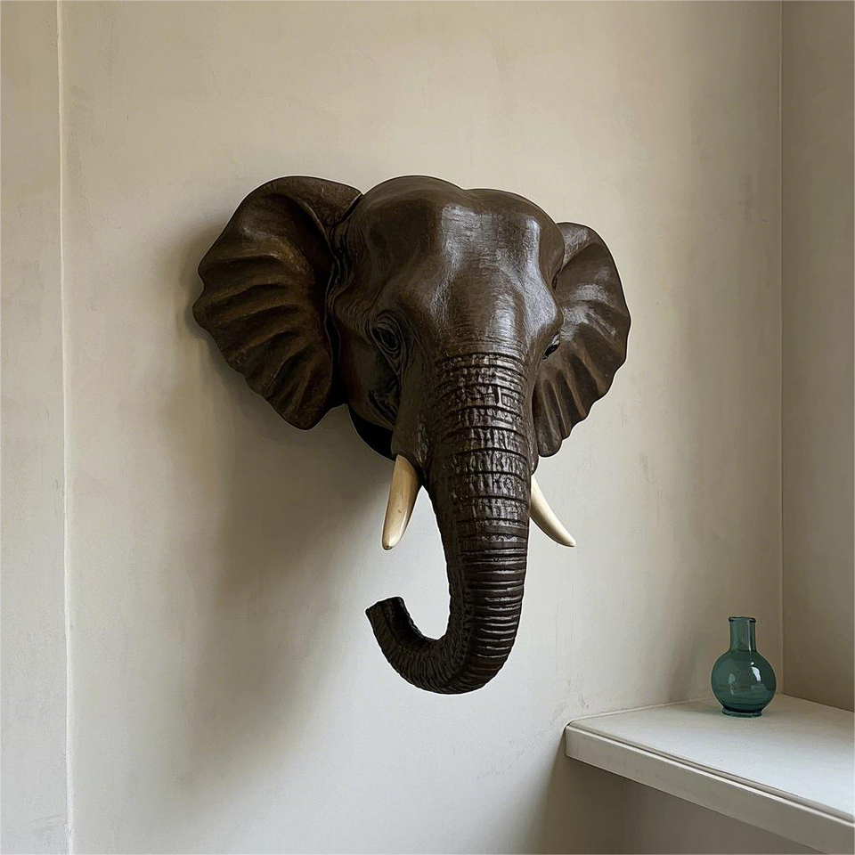Wholesale Custom Taxidermy Wall Decor Hangings Decoration Sculpture Arts Home Decor Imitation Animal Resin Elephant Head