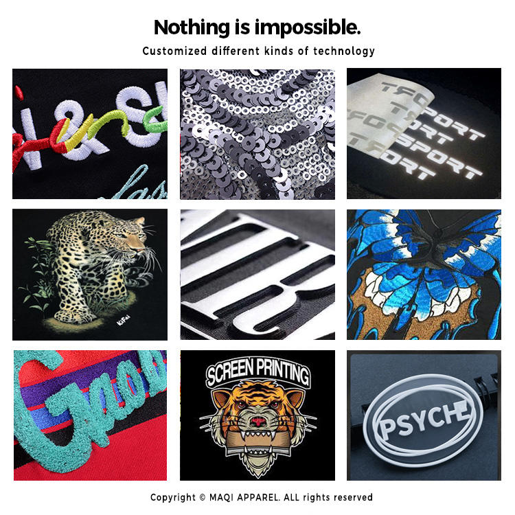 Technics:Automated cutting, acid wash, Nail bead embroidery, GARMENT DYED, Printed, BLEACH WASH, Rinsing, Flocking embroidery, sequin embroidery, 3D embroidery, Affixed cloth embroidery, Maching embroidery/Automated embroidery, Hand Embroidery, Stonewashed, Enzyme Wash, SAND WASH, Laser Wash, PP spray/Sand Blast, Chain embroidery, towel embroidery, Applique