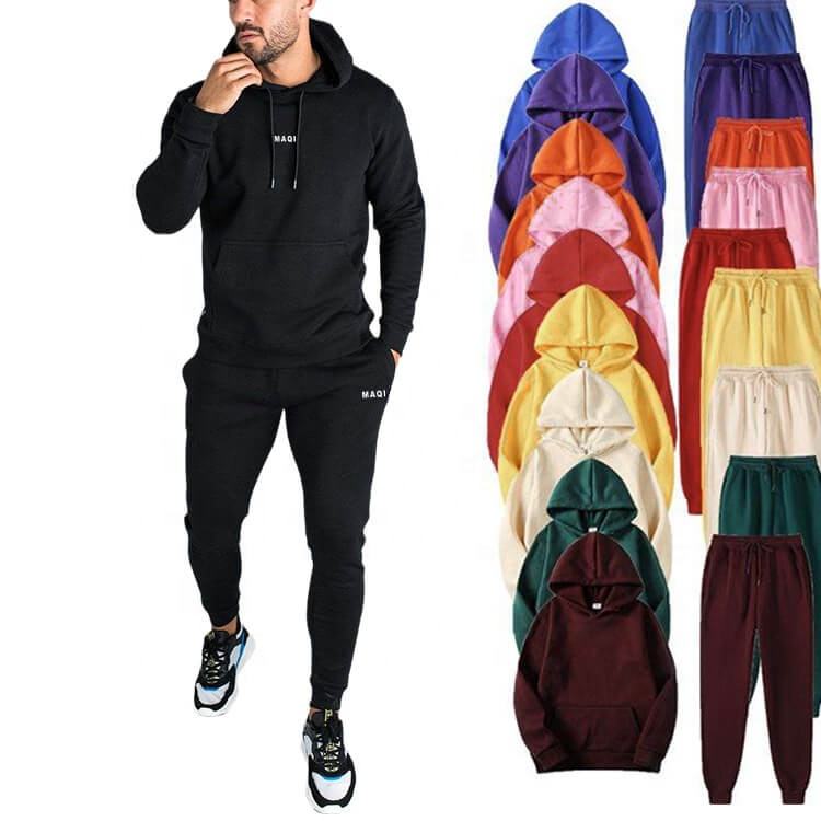 Wholesale Custom logo Plain Slim Fit Tech Fleece Tracksuit Set Fitted Mens Jogging Track Suits Cotton Pullover Joggers Suit