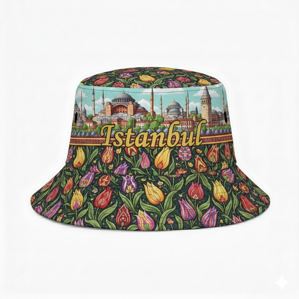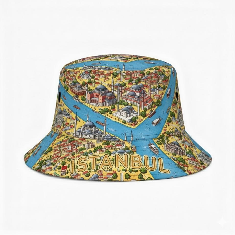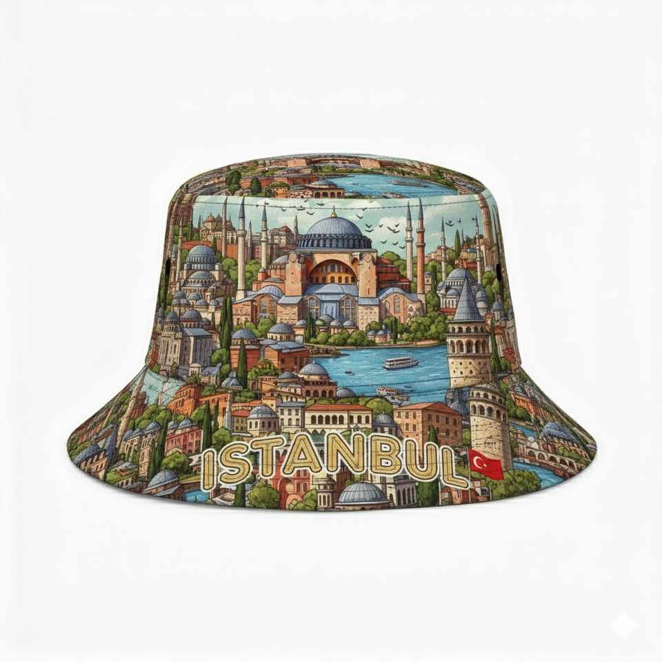 Cappello a Secchiello in Pelle con Logo Personalizzato Stampato, Souvenir Turistico di Istanbul, Turchia, Vendita all'Ingrosso