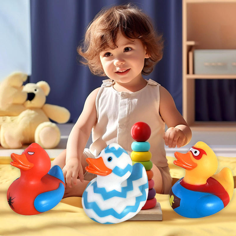 Anatre di Gomma di Sicurezza da 3 Pollici Personalizzabili all'Ingrosso con Logo Stampato, Giocattolo Galleggiante Cognitivo per il Bagno, Unisex