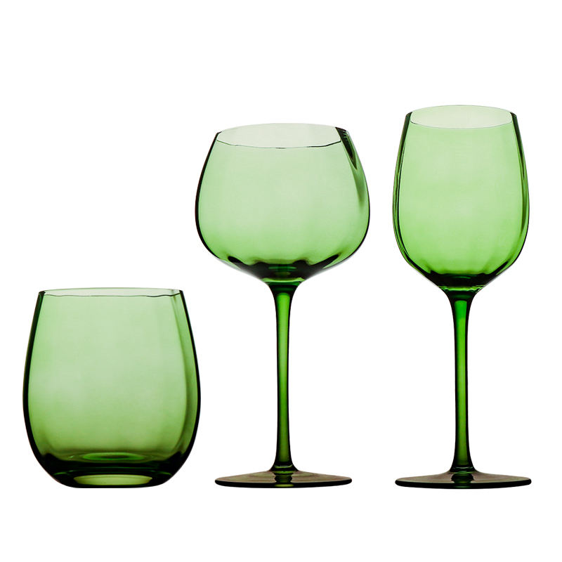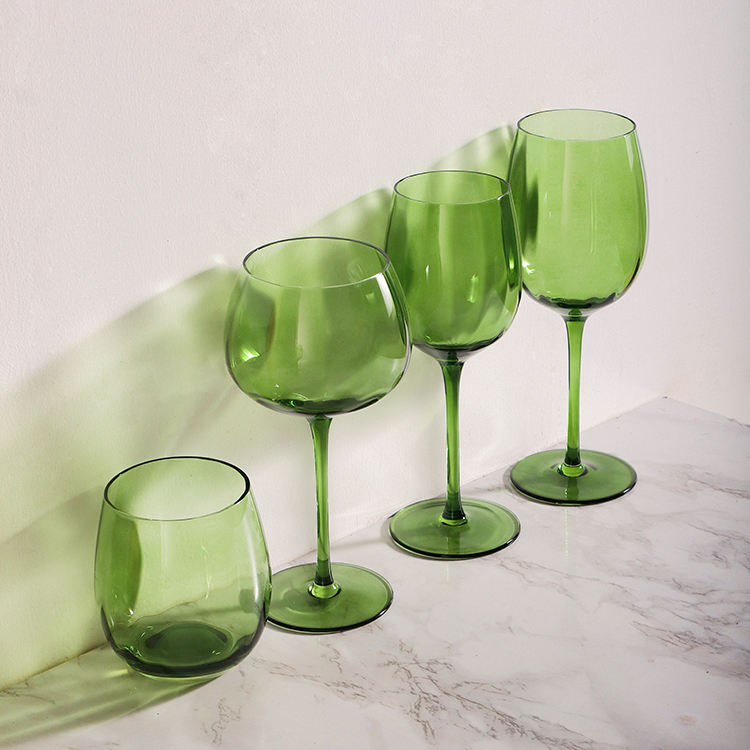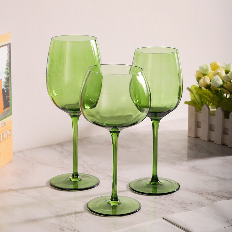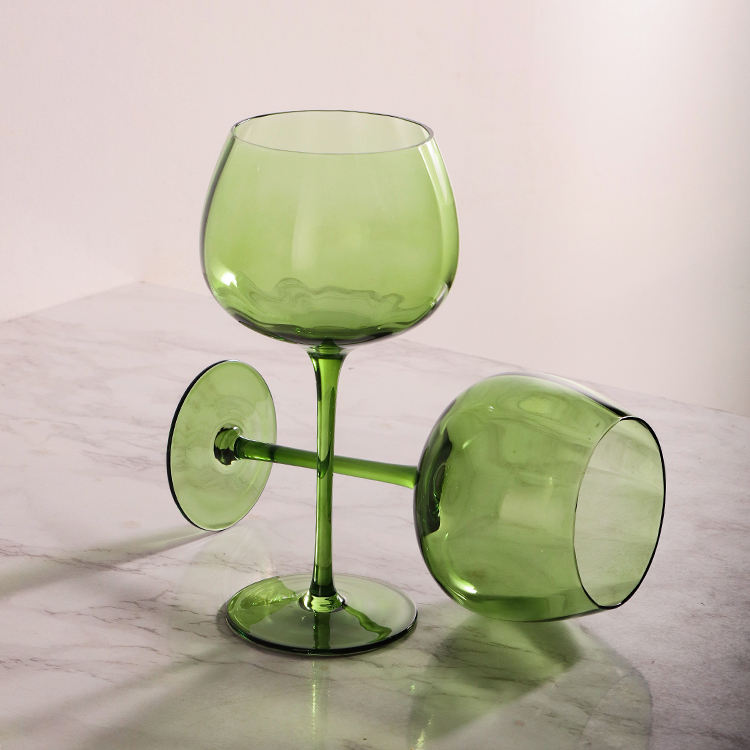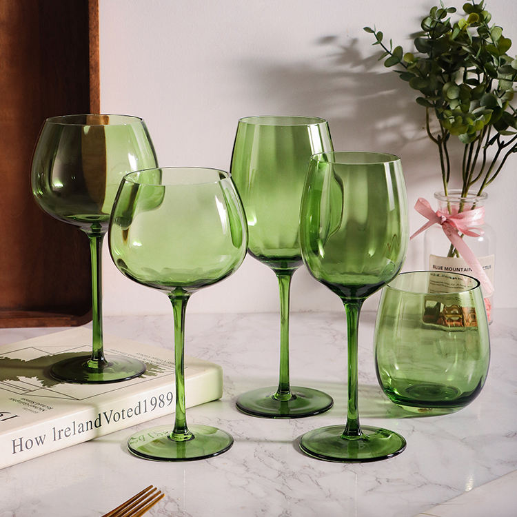 Calici da Vino Rosso in Cristallo Soffiati a Mano Personalizzabili all'Ingrosso, Coppa Vintage Verde per Ristorante, Hotel e Feste
