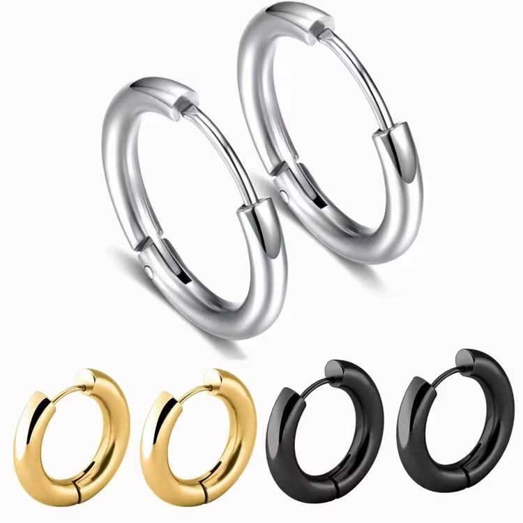 Orecchini a Cerchio in Acciaio Inossidabile Personalizzabili all'Ingrosso, 8-12mm, Unisex, Ipoallergenici, per Piercing