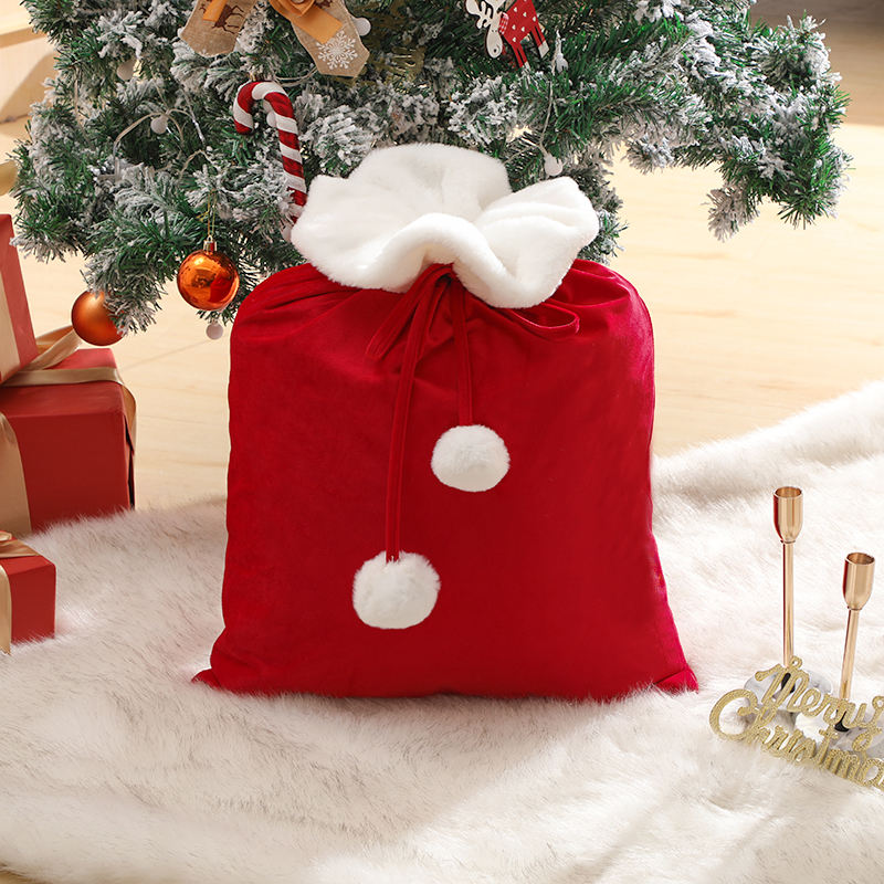 Wholesale Customization Christmas Luxury Santa Sack With Pom Pom Fur Sublimation Christmas Velvet Bags