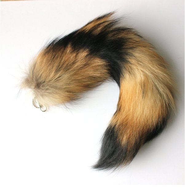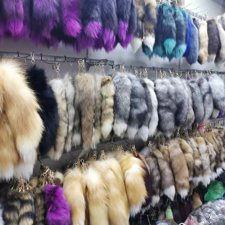 Personalizzazione all'ingrosso argento naturale pelliccia di volpe coda portachiavi in metallo tintura coda di volpe spina anale