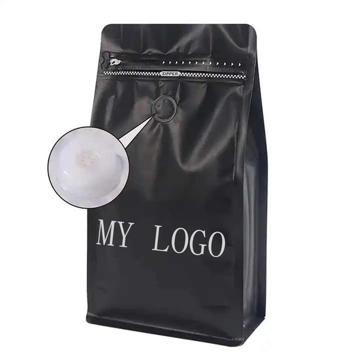 Sacchetti per Caffè Personalizzabili all'Ingrosso OEM in Plastica Nera Opaca da 12 Once con Fondo Piatto