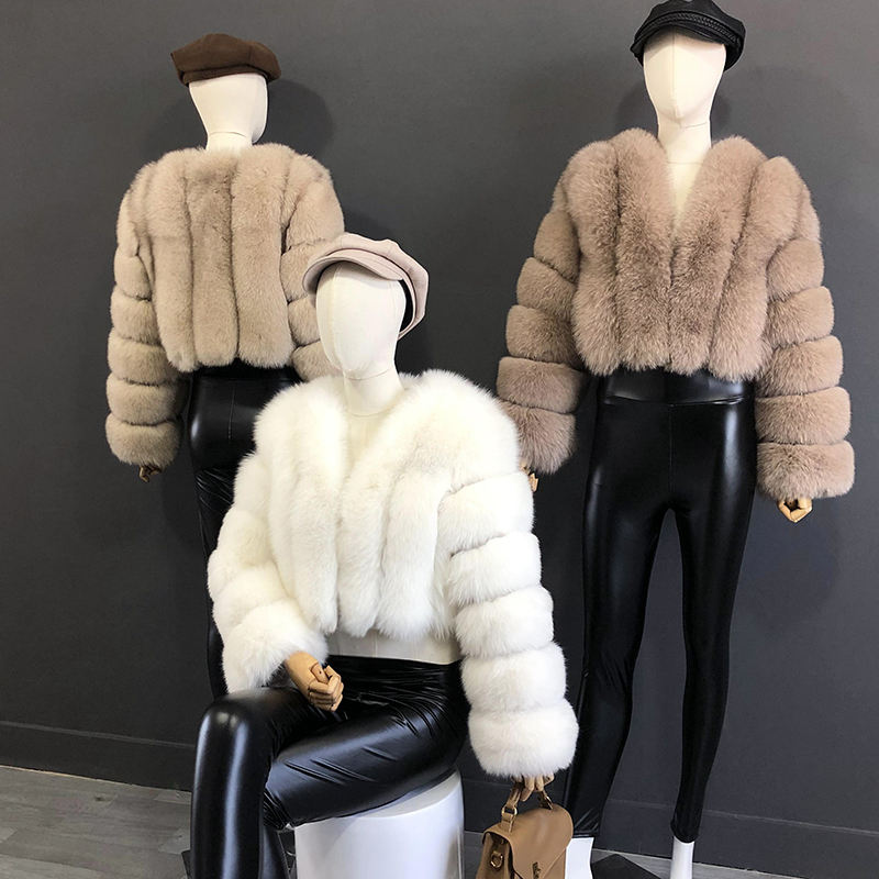 Wholesale Customization Women Fur Coat Real Fox Fur Jacket Natural Fox Fur Short Style Clothing Full Length Sleeve Female Coat
