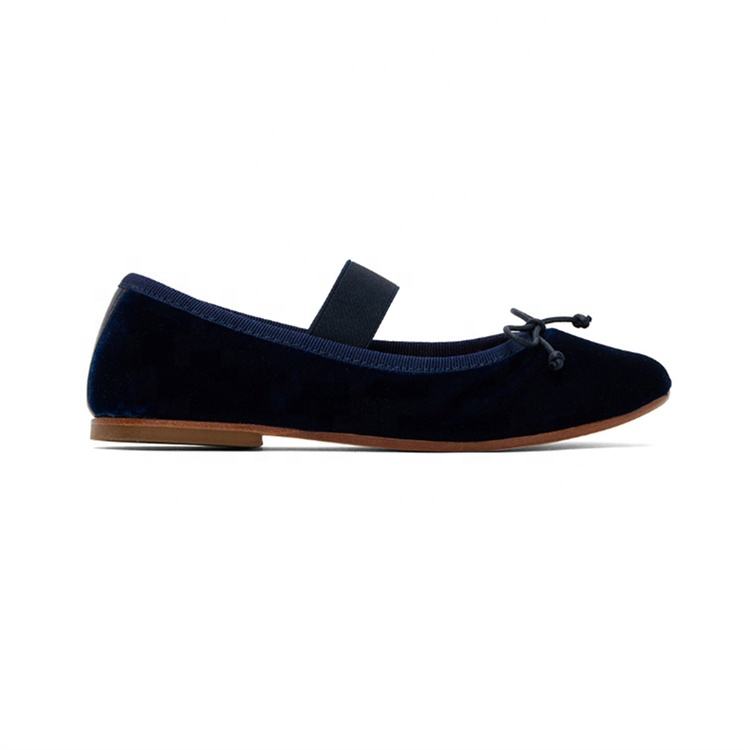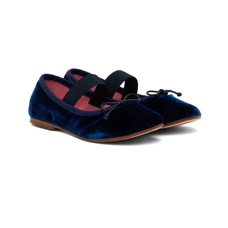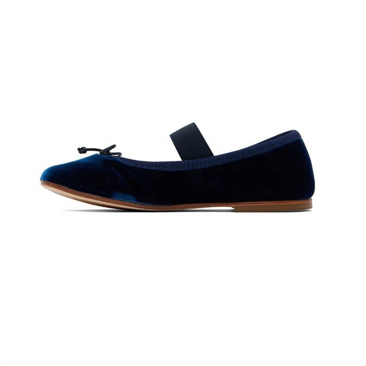 Wholesale Customize Flexible Flat Ballerina Girl Shoes Blue Velvet Flat Mary Jane Princess Shoe