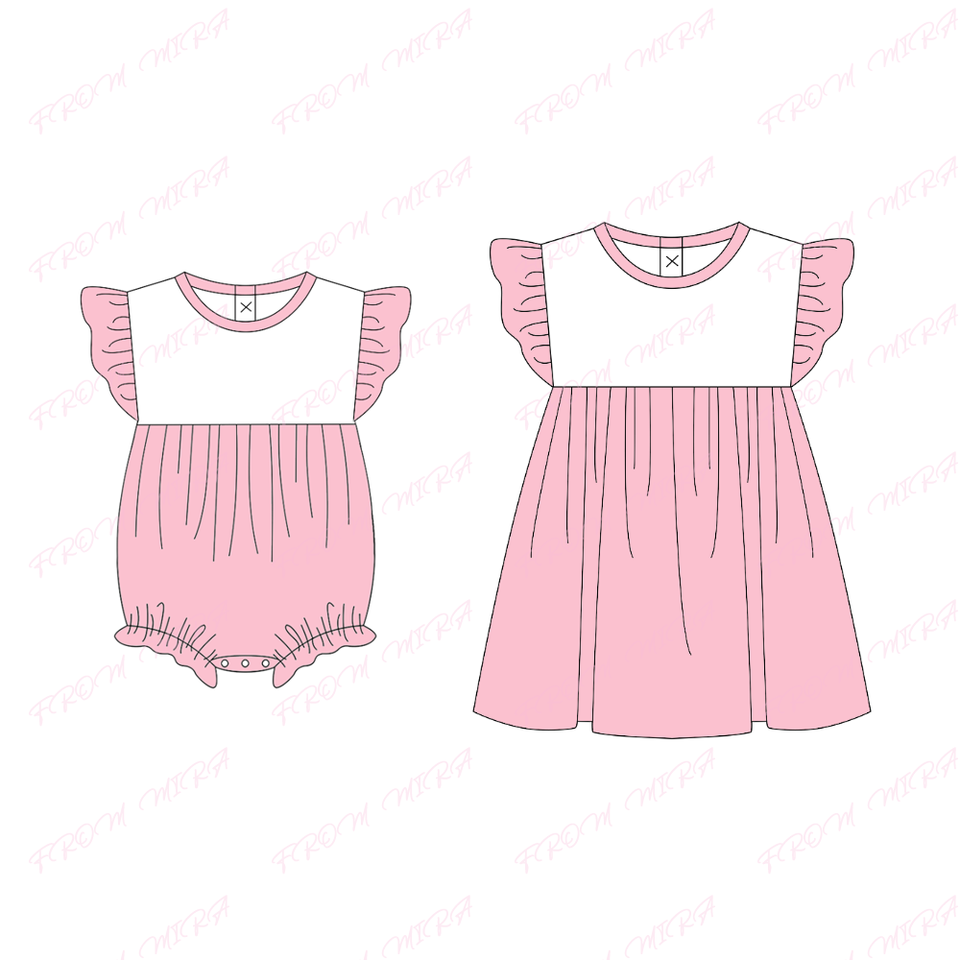 Wholesale Customized Kids Girls Dress Long Sleeve Bibs Ruffle Bow Gingham Cotton Sisters Matching Children Clothing Dresses