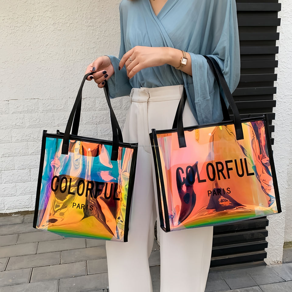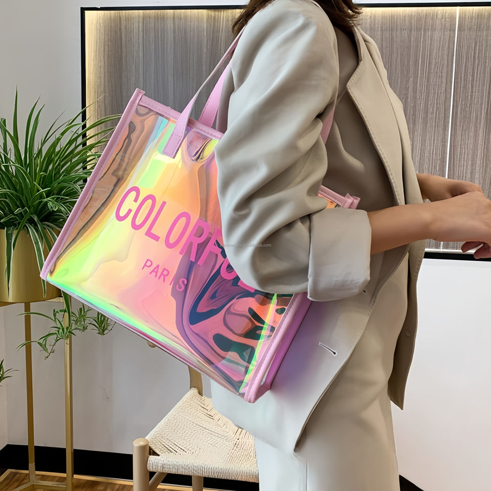 Borsa di lusso trasparente su misura all'ingrosso del Laser del PVC, borsa impermeabile della gelatina, borsa ispessita di trucco