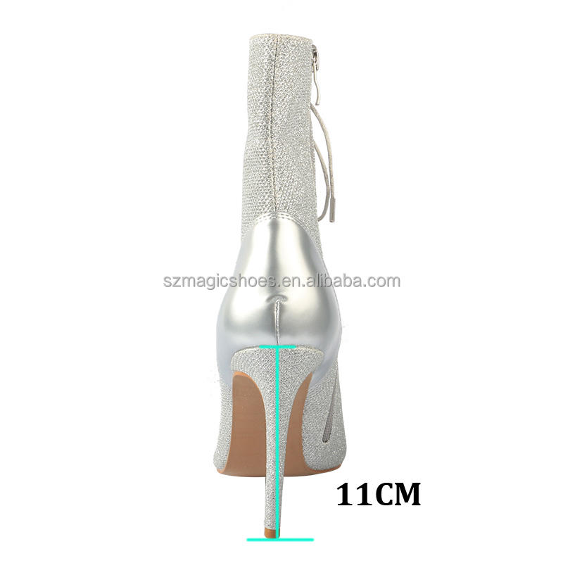 Wholesale Customized Sexy Silver Latin American Dance Boots Very High Heel 11CM Dance Heels for Women