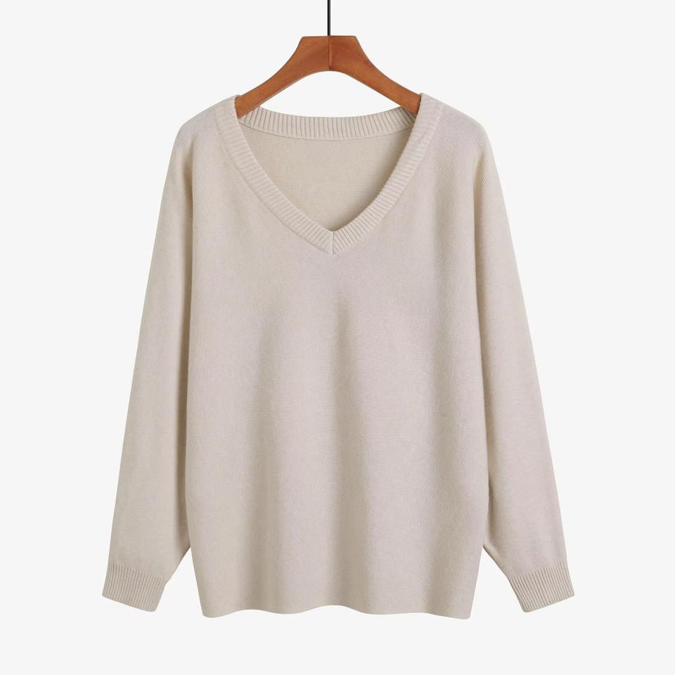 Maglione Invernale in Cotone e Cashmere con Scollo a V e Maniche Lunghe, Pullover in Lana Lavorato a Maglia per Donna, Personalizzabile all'Ingrosso