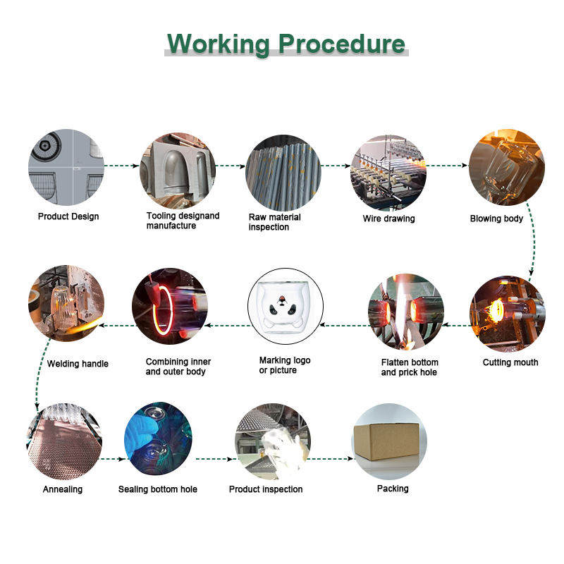 Tazze da Caffè e Tè in Vetro Borosilicato a Doppia Parete Isolate, Trasparenti, da 350ml, con Manico e Logo Personalizzato, Vendita all'Ingrosso