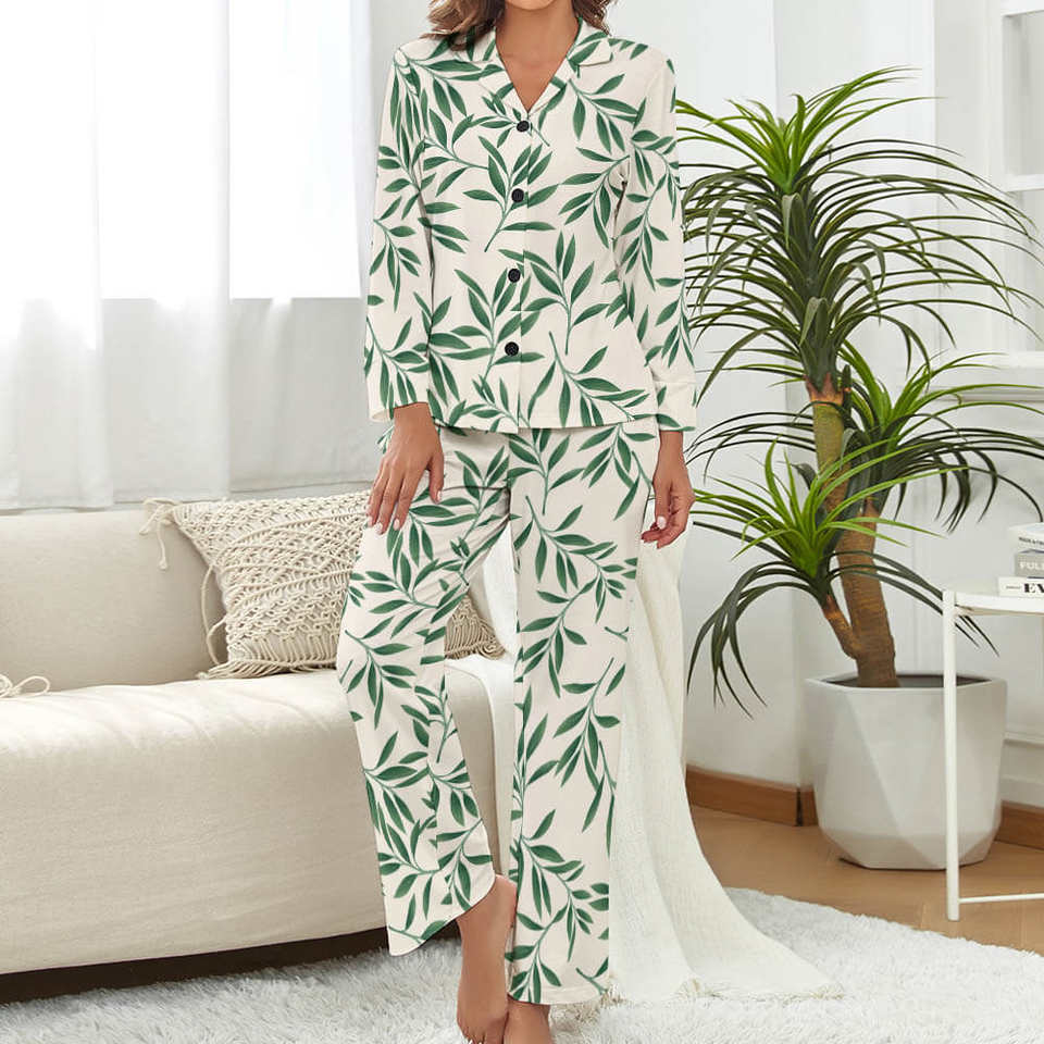 Wholesale Customs logo Print on Demand Pajamas Women's Spring and Autumn Long Sleeve Homewear Wearable Pajamas Suit