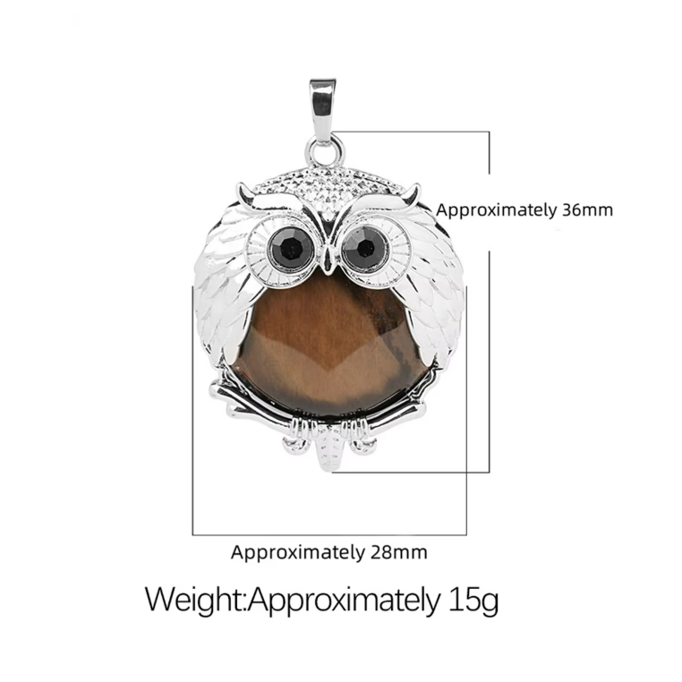 Ciondolo all'ingrosso a forma di gufo in argento con pietra naturale, ciondolo rotondo delicato con cristallo curativo per la creazione di gioielli