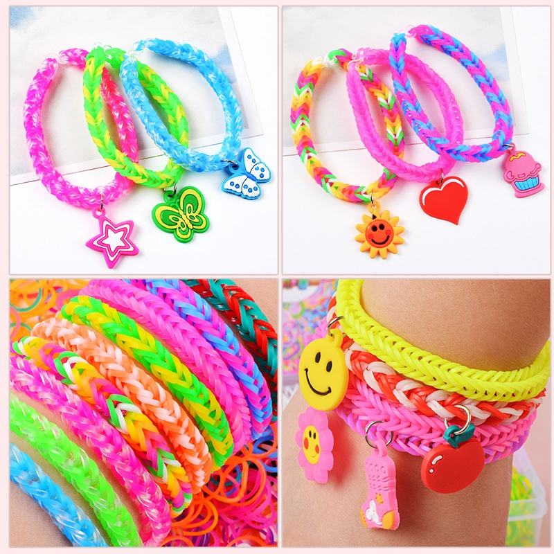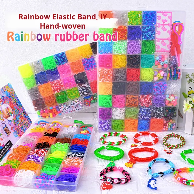 Kit per Braccialetti Intrecciati Fai-da-Te per Bambini con Perline Acriliche e Set di Elastici per Tessitura