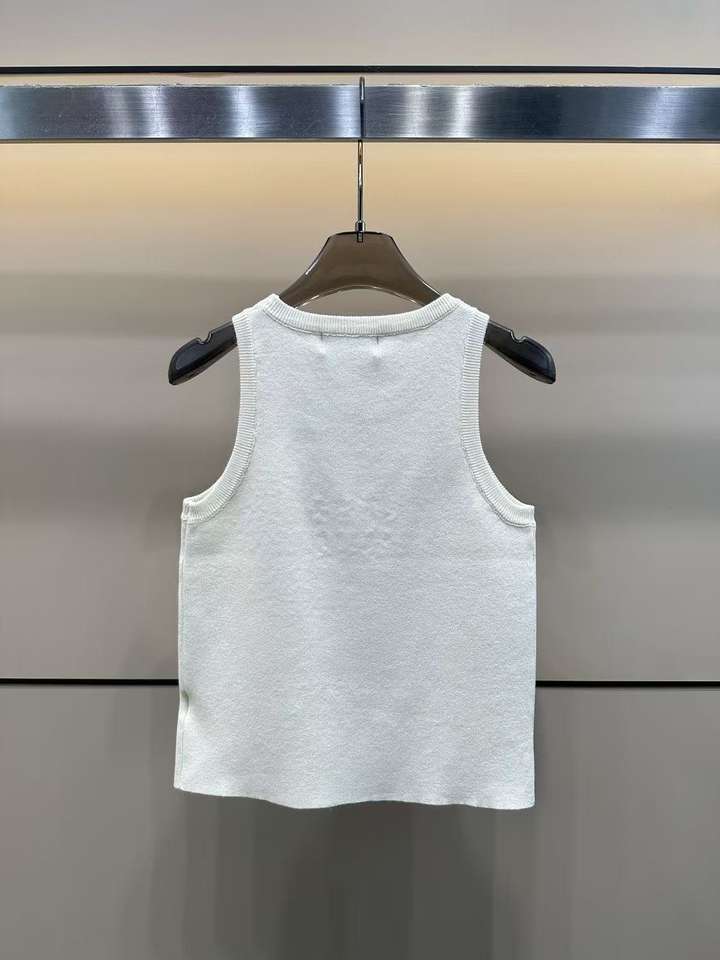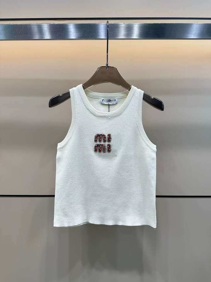Wholesale Designer 2025 Summer Collection Breathable White Rhinestone Knitted Crop Top for Women Heat-Transfer Tank Top