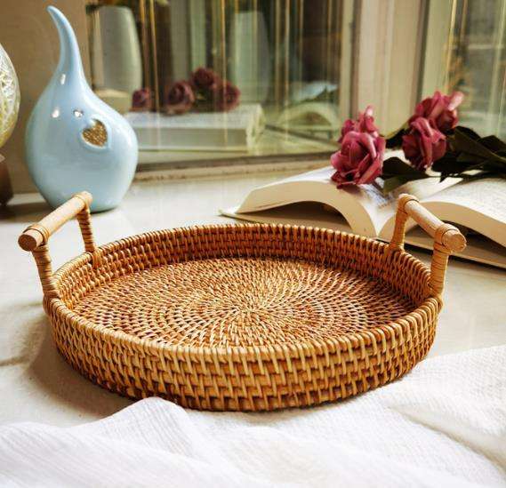 Espositore all'ingrosso Panier tessuto di vimini Organizer pane frutta cibo Homme Rack canna paglia di stoccaggio di plastica cesto in Rattan