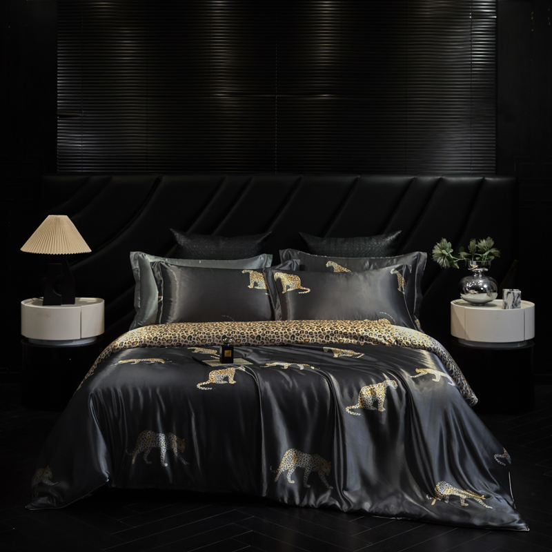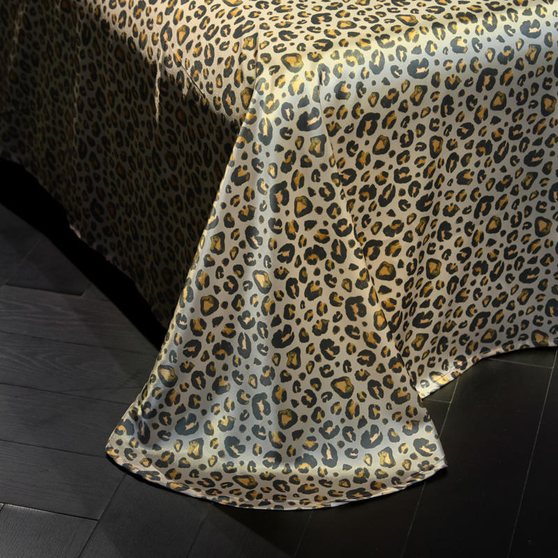 Wholesale Double Queen King Bed Fitted Sheet Pillowcases Animal Leopard Print Silk-like Satin Bedding Sets Duvet Cover