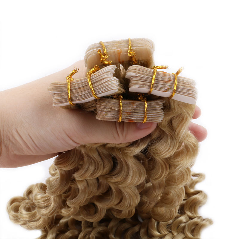 tape hair extension, is tied with golden string, and packed in beautiful paper card to keep the shape of the hair well in the bag during transport and put in cartons in good order.
