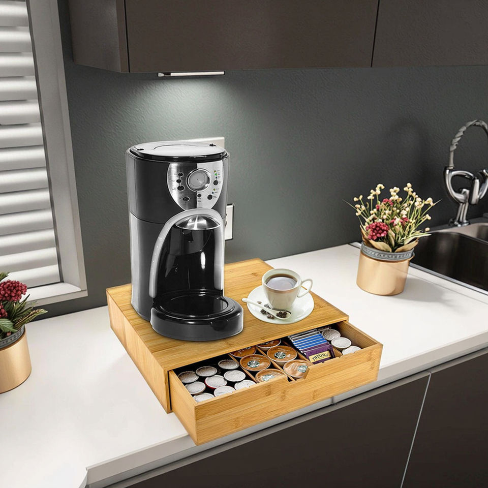 Organizzatore a Due Livelli in Bambù per Capsule di Caffè e Utensili con Utilizzo Efficiente dello Spazio