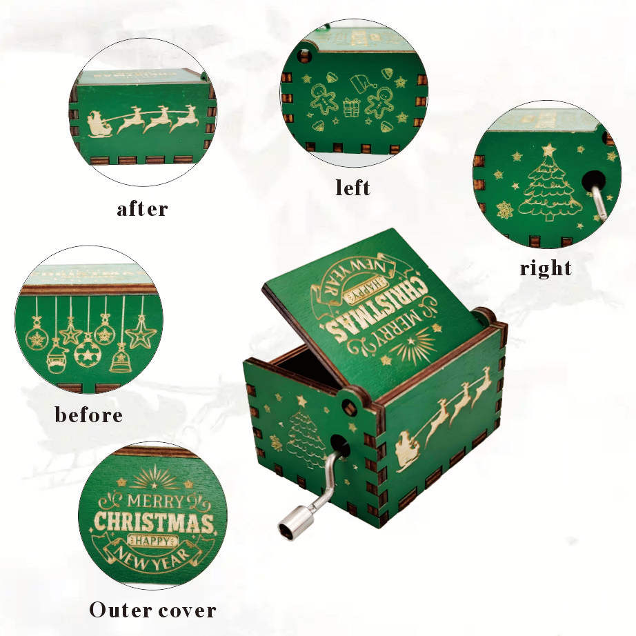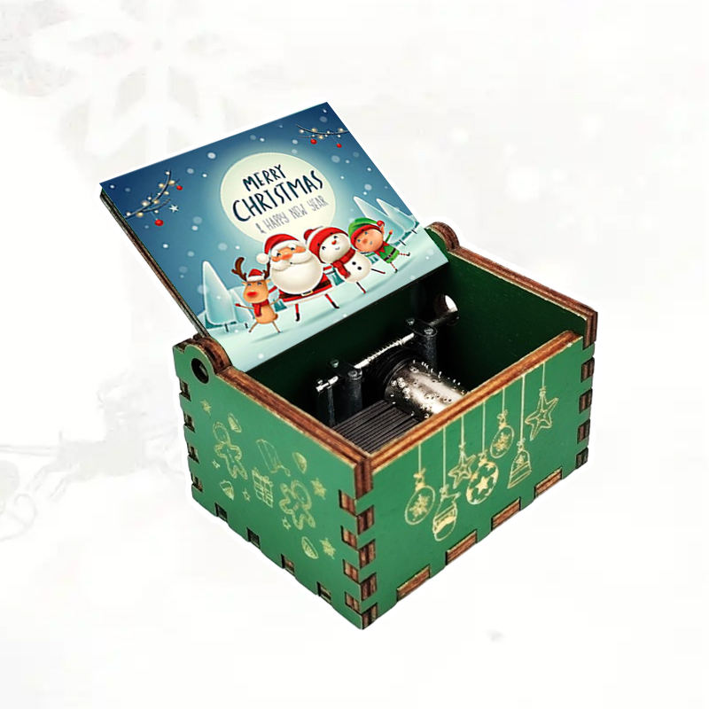 Wholesale Eco-Friendly Green Rotating Wooden Hand Cranked Christmas Music Boxes Customized Logo Fast Delivery Stock Perfect