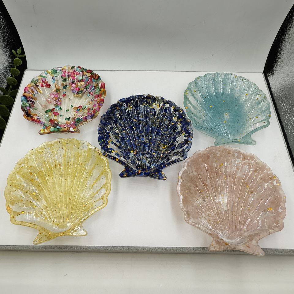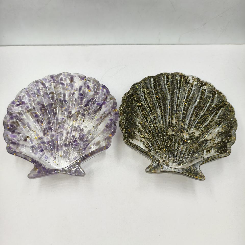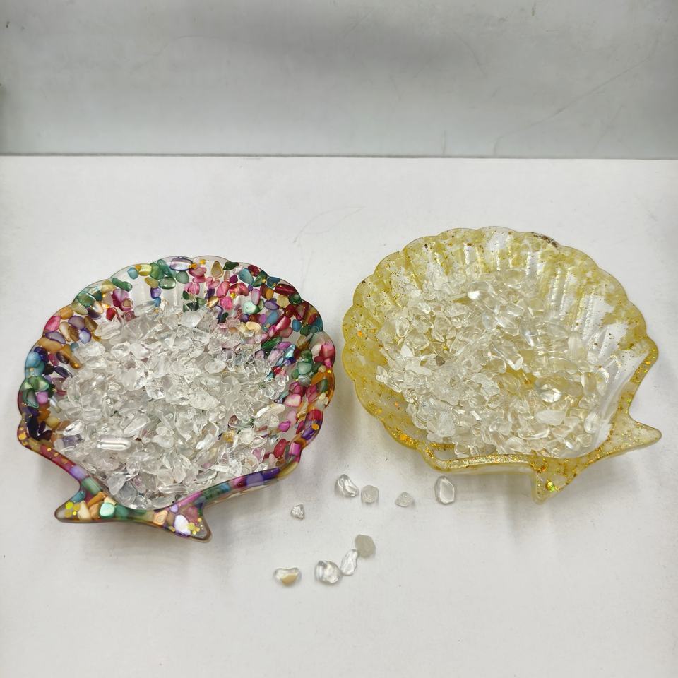 Wholesale Eco-Friendly Natural Crystal Pebbles Storage Trays Resin and Shell Home Decor Resin Crafts