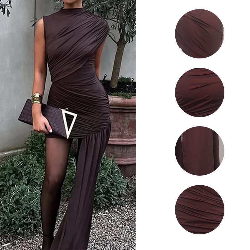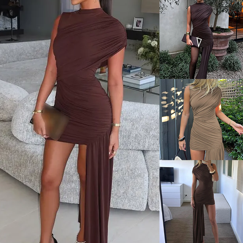 Abito Casual da Donna Senza Maniche Asimmetrico a Collo Tondo, Aderente, Sottile, alla Moda, Nuovo Arrivo Primavera, Eco-Friendly, per Feste - Vendita all'Ingrosso