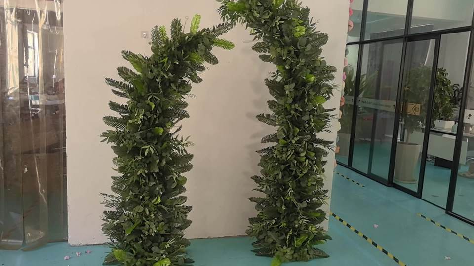 Wholesale Eco-friendly Silk Green Artificial Horn Arch-Floral Wedding Guest Sign Decoration Green Plant Father's Day Halloween