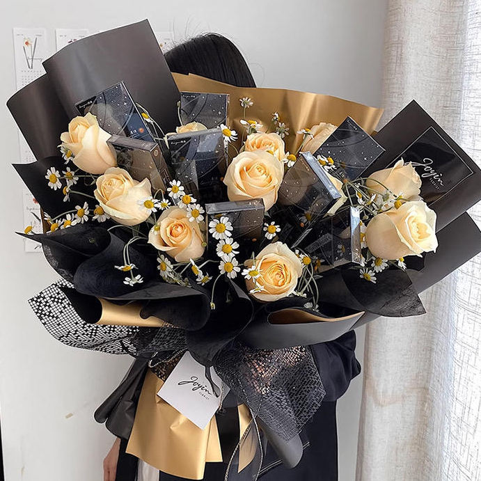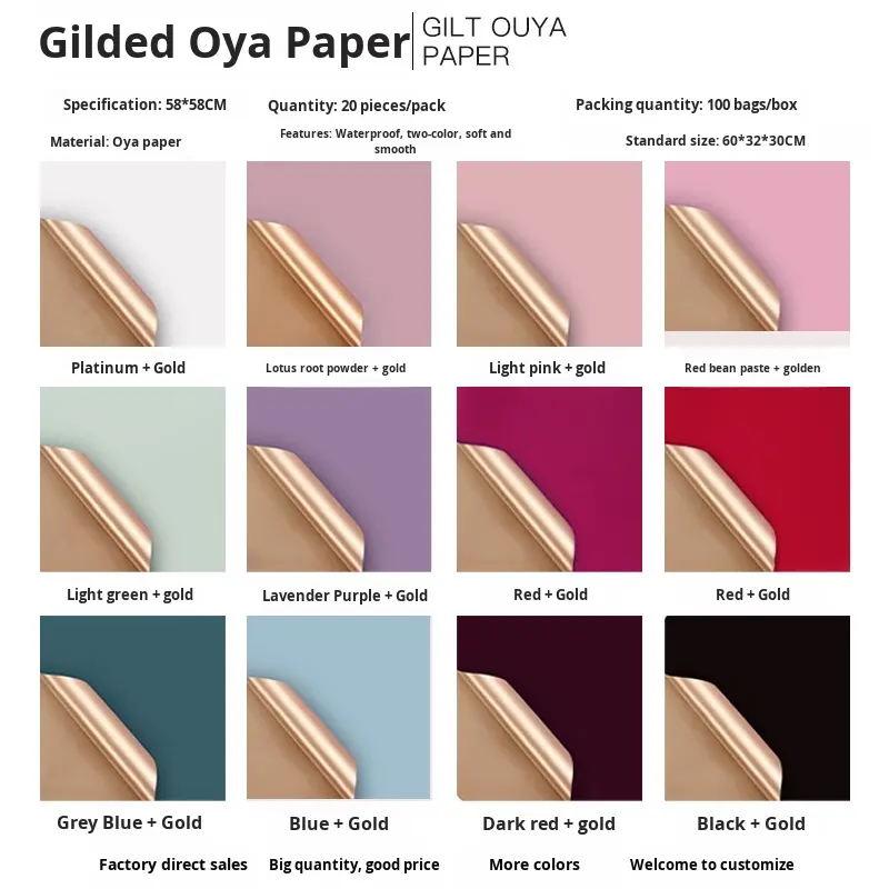 Wholesale Euro Styles Two-Color Gilt Booming Flower Basket & Bouquet Wrapping Paper Gold Gift Packing Paper Paperboards Gift