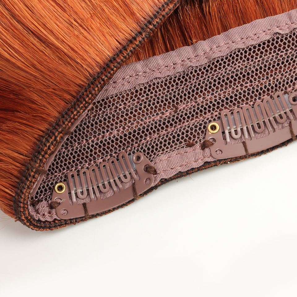 Extensions per capelli umani Remy 100% europei all'ingrosso, con clip, a pezzo singolo, a doppia trama, effetto halo color rame