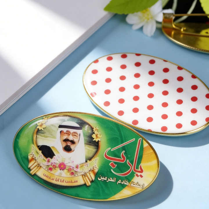 Spille smaltate all'ingrosso del Re Abdullah dell'Arabia Saudita, con chiusura di sicurezza resistente, foto personalizzata per souvenir patriottici e regali culturali