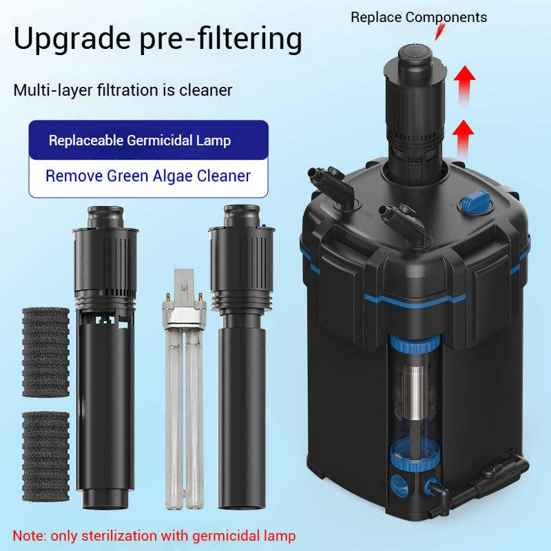 Filtrazione multi-strato: Il sistema di filtrazione multi-strato con lampada UV sostituibile controlla efficacemente le alghe, garantendo un ambiente acquatico pulito e sano.