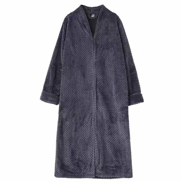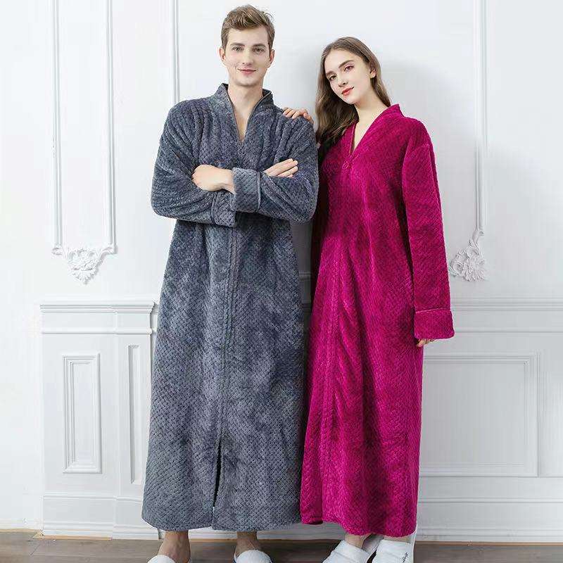 Wholesale Extra Long Thermal Luxury Sleepwear Zipper Front Full Ankle Length 100% Polyester Robe Lounge Coverup Bathrobe Couple